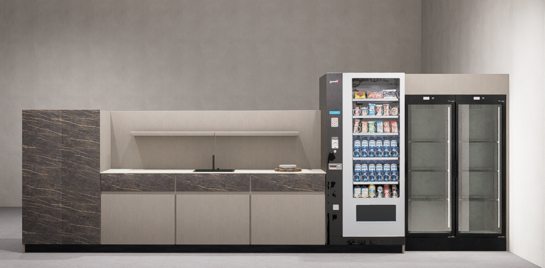 La présence de distributeurs automatiques et de distributeurs de boissons est désormais une constante dans les environnements de travail. Cappa Arredamenti non seulement intègre ces éléments dans la conception des espaces, mais les élève au rang de véritables lieux de détente fonctionnels. Chaque espace est conçu dans un souci d'esthétique globale, garantissant que les distributeurs sont non seulement fonctionnels, mais également agréables à regarder. Les finitions prestigieuses donnent une touche de classe, rendant chaque coin du bureau accueillant et professionnel, et chaque îlot des zones productives, intégré et agréable, sans distraire de l'environnement dans lequel il est immergé.